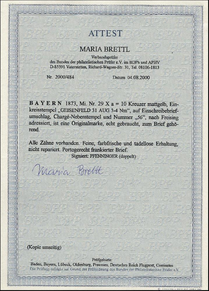 | Prüfer: | Brettl, Maria (BPP (Bund Philatelistischer Prüfer)) |