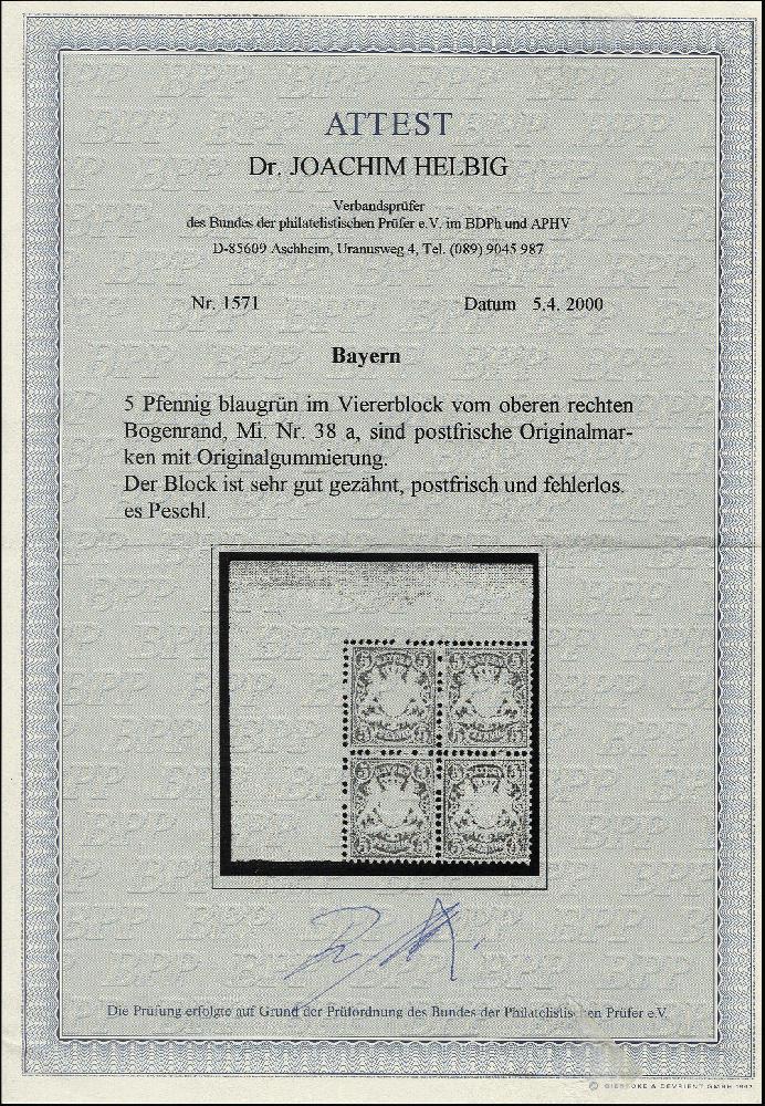 | Prüfer: | Helbig, Joachim (BPP (Bund Philatelistischer Prüfer)) |