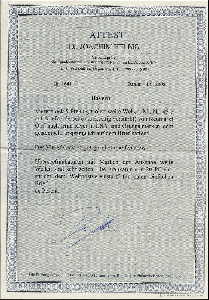 | Prüfer: | Helbig, Joachim (BPP (Bund Philatelistischer Prüfer)) |