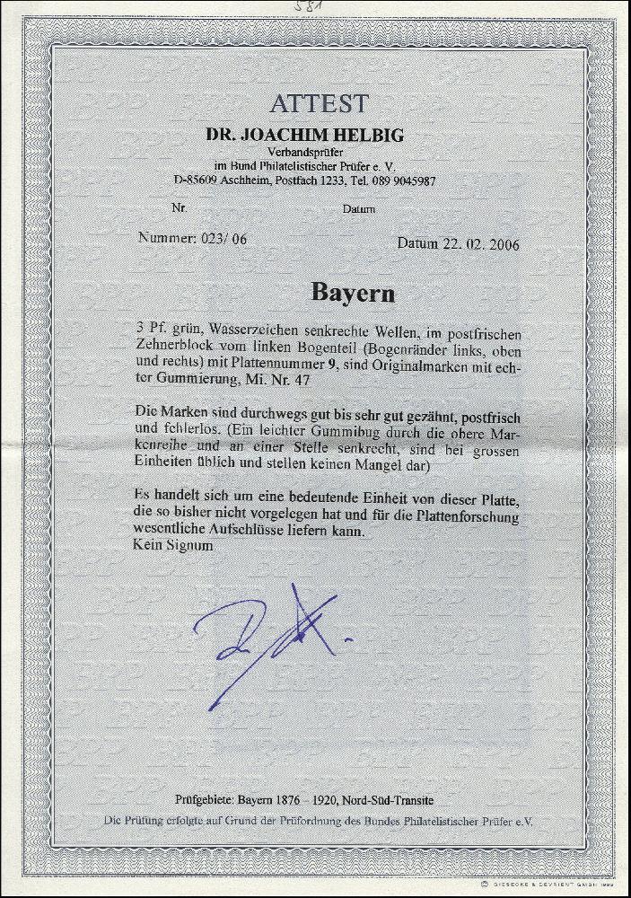 | Prüfer: | Helbig, Joachim (BPP (Bund Philatelistischer Prüfer)) |