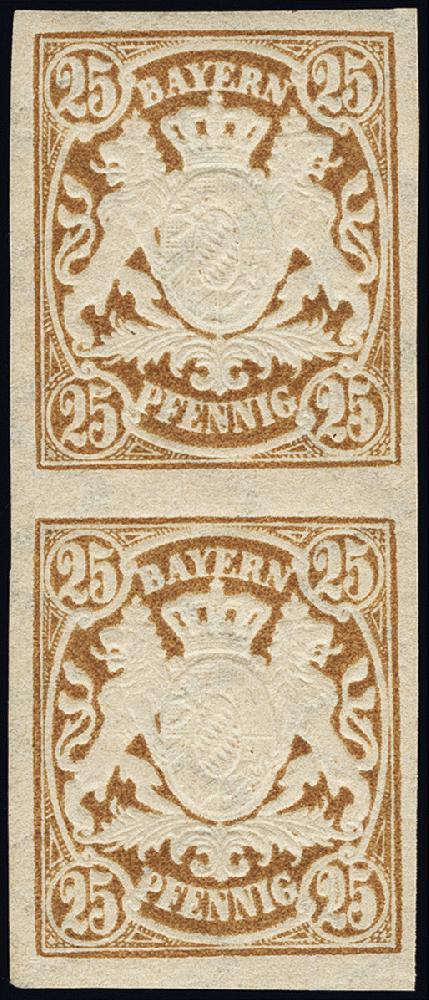 | Zusatzinformationen und Suchstichworte: | 376. Auktion Heinrich Köhler 19.-24. April 2021 Los 7184 25 Pfennig gelbbraun ungezähnt, senkrechtes Paar, sehr schön farbfrisch und allseits breitrandig, postfrisch in einwandfreier Erhaltung, untere Marke signiert Pfenninger, Fotoattest Sem BPP (2020) Zuschlag 4.600,00 EUR |
