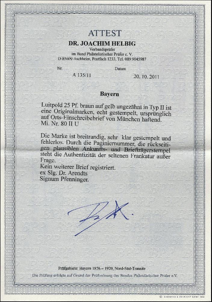 | Prüfer: | Helbig, Joachim (BPP (Bund Philatelistischer Prüfer)) |