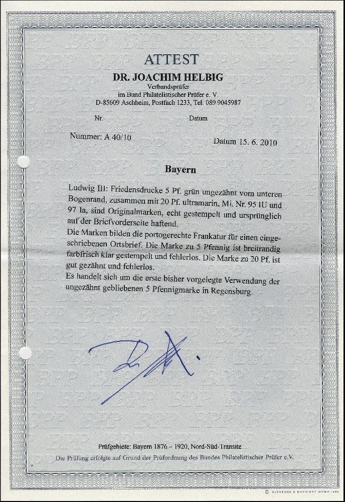 | Prüfer: | Helbig, Joachim (BPP (Bund Philatelistischer Prüfer)) |