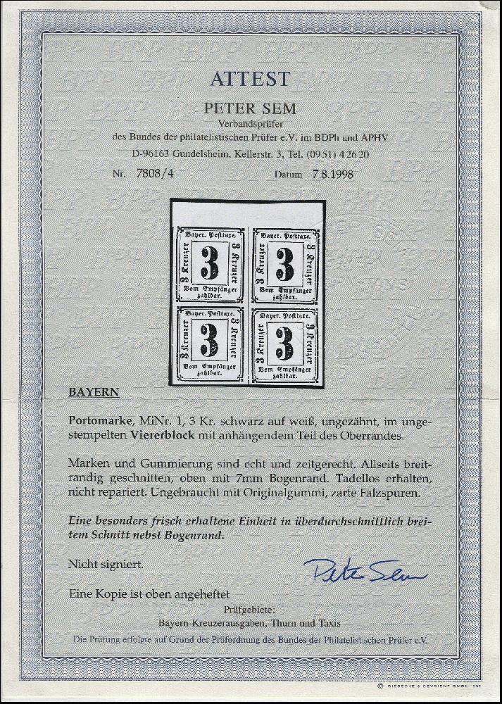 | Prüfer: | Sem, Peter (BPP (Bund Philatelistischer Prüfer)) |