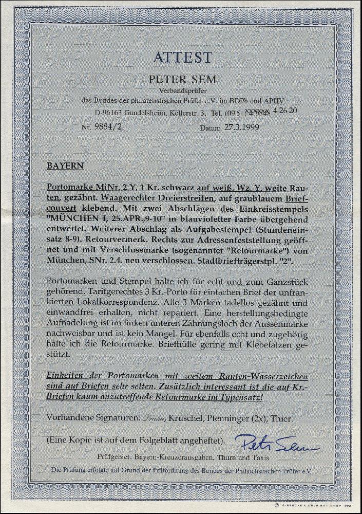 | Prüfgebiet: | Altdeutschland Bayern Portomarken |