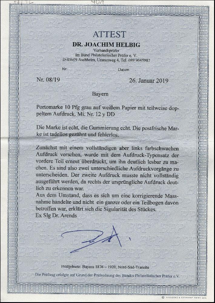 | Prüfgebiet: | Altdeutschland Bayern Portomarken |