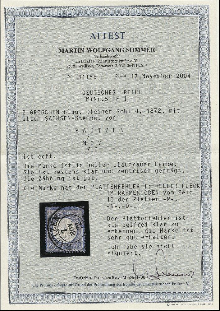 | Prüfer: | Sommer, Martin-Wolfgang (BPP (Bund Philatelistischer Prüfer)) |