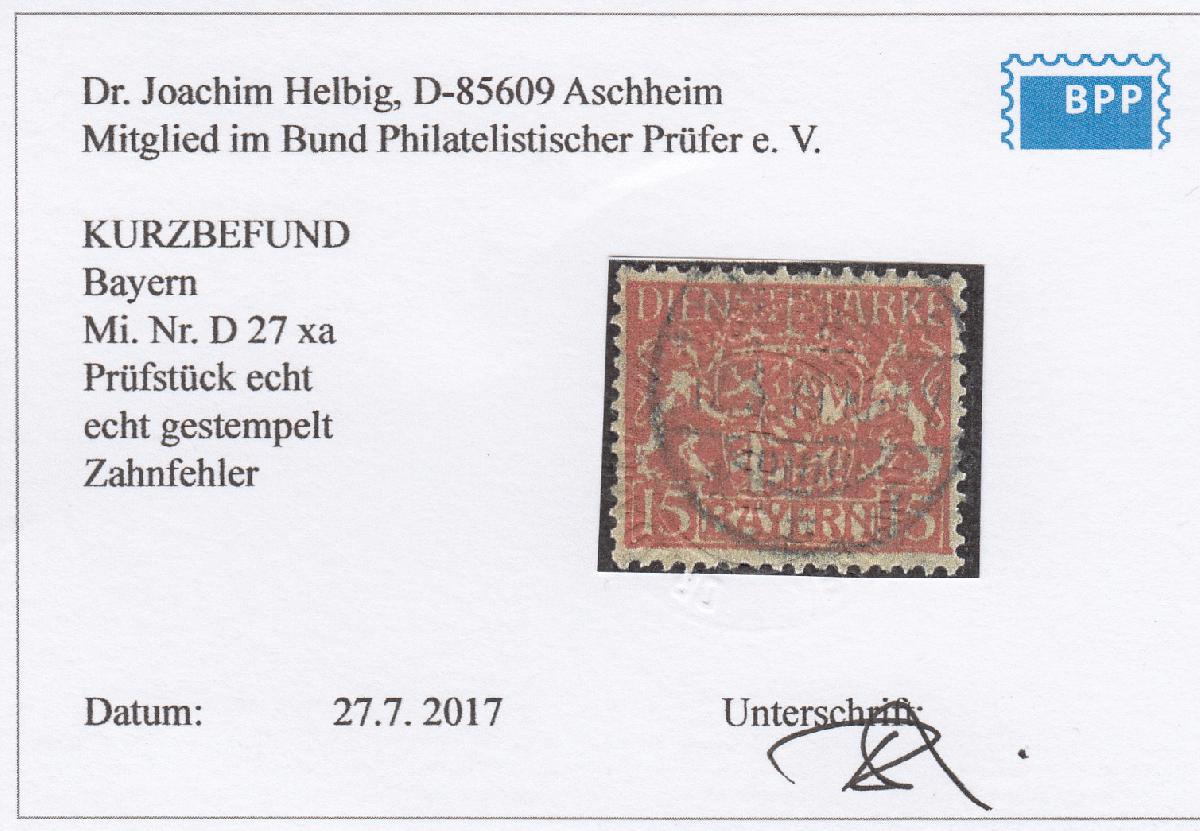 | Prüfgebiet: | Altdeutschland Bayern Dienstmarken |