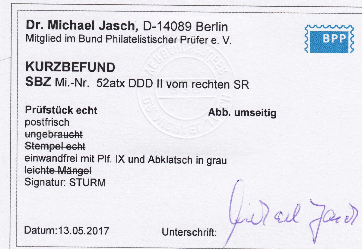 | Prüfgebiet: | Alliierte Besetzung SBZ Ost-Sachsen |