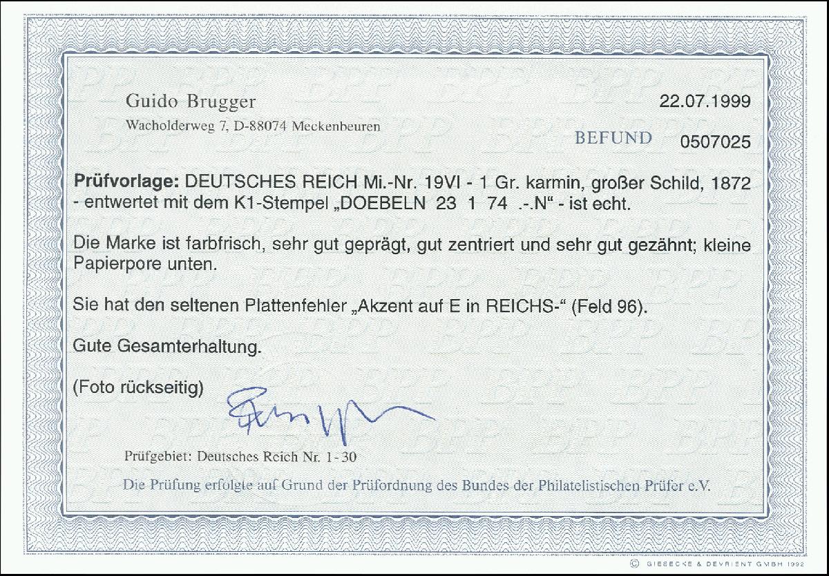 | Prüfgebiet: | Deutsches Reich 1871 - 1918 (Mi-Nr. 1 - 106) |