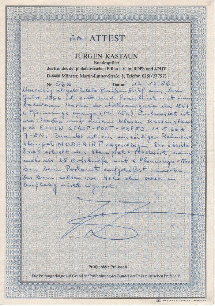 | Prüfer: | Kastaun, Jürgen (BPP (Bund Philatelistischer Prüfer)) |