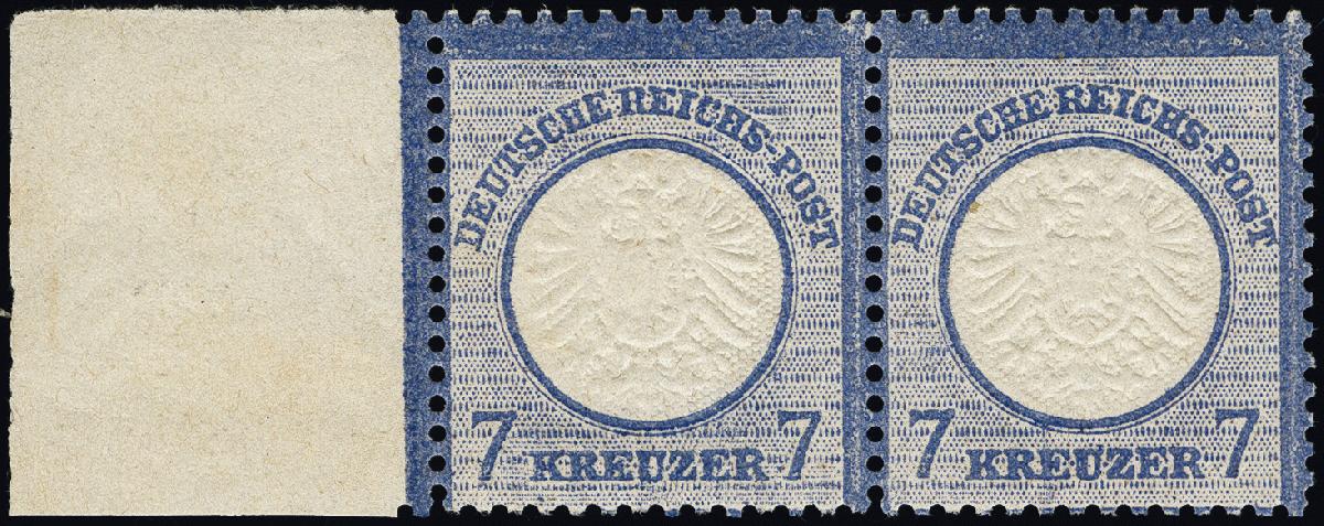 | Zusatzinformationen und Suchstichworte: | 376. Auktion Heinrich Köhler 19.-24. April 2021 Los 6258 7 Kreuzer blau im waagerechten Paar mit breitem Bogenrand links, postfrisch, Paar mittig oben leicht angetrennt, sonst in guter Gesamterhaltung, Fotobefund Hennies BPP Ausruf 100,00 EUR |
