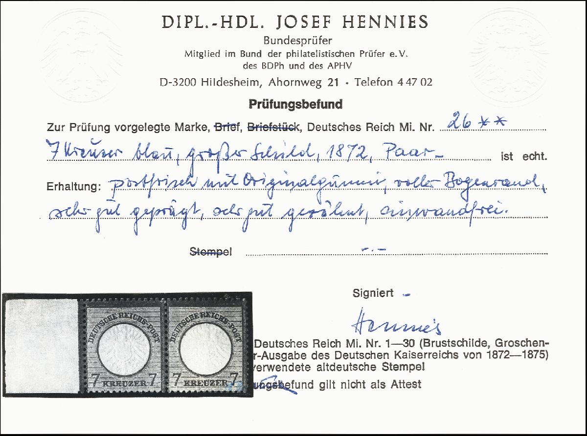 | Prüfer: | Hennies, Josef (BPP (Bund Philatelistischer Prüfer)) |