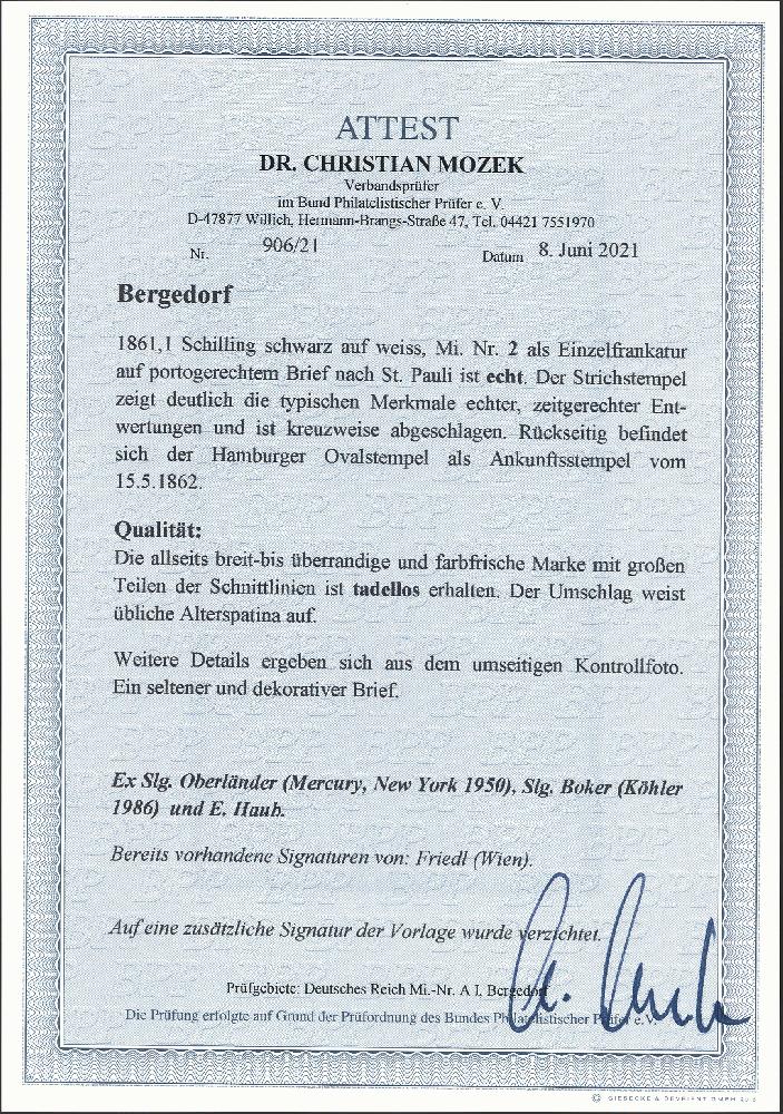 | Prüfer: | Mozek, Christian (BPP (Bund Philatelistischer Prüfer)) |