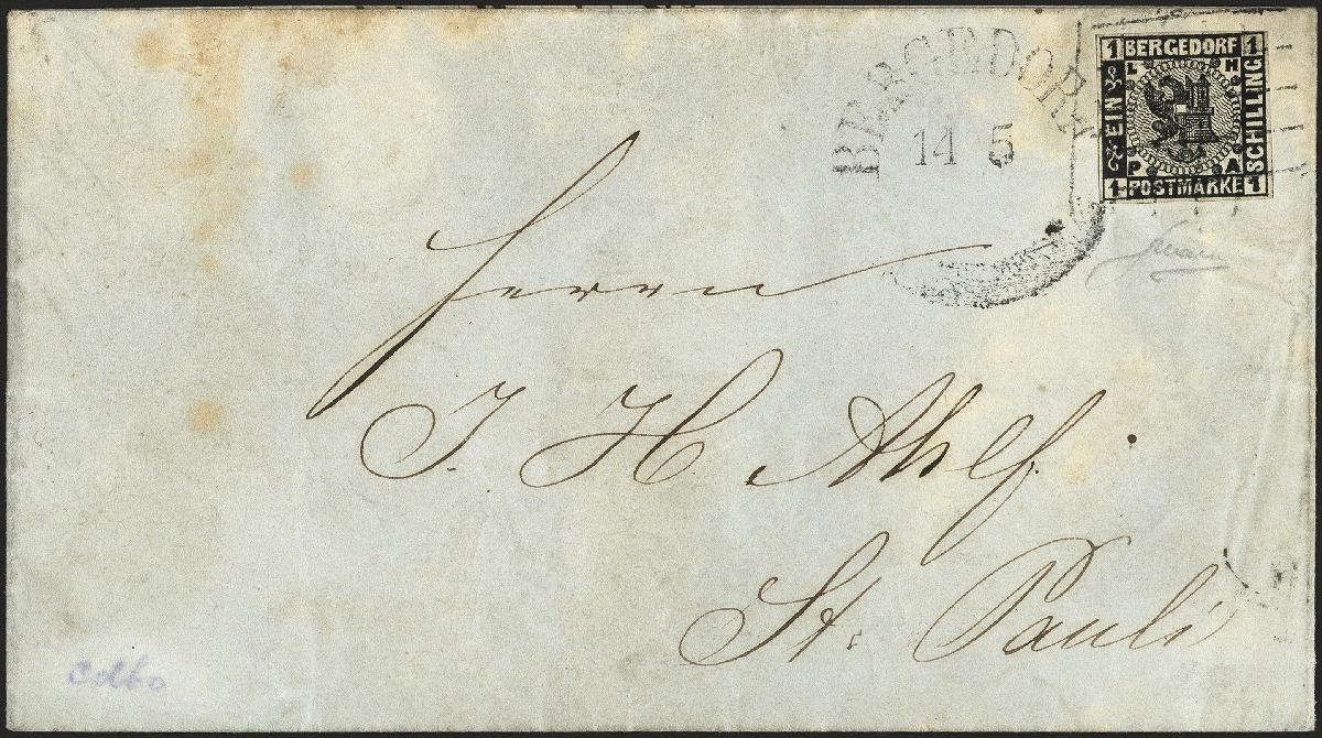 | Zusatzinformationen und Suchstichworte: | 377. Auktion Heinrich Köhler 20. - 25. September 2021 Los 22 1 Schilling schwarz, farbfrisch und voll- bis breitrandig mit sauber kreuzweise aufgesetztem Strichstempel und klar nebengesetztem "BERGEDORF 14 5" (1862) auf komplettem Faltbrief nach St. Pauli mit Ankunftsstempel vom nächsten Tag. Das Briefpapier Lagerungsspuren, sonst einwandfrei. Signiert Friedl und Fotoattest Dr. Mozek BPP (2021) Ausruf 500,00 EUR Zuschlag 1.350,00 EUR (aus der Sammlung Erivan Haub) |
