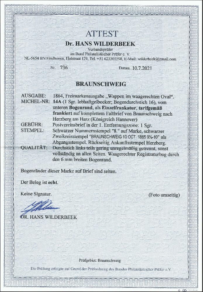 | Prüfer: | Wilderbeek, Hans (BPP (Bund Philatelistischer Prüfer)) |