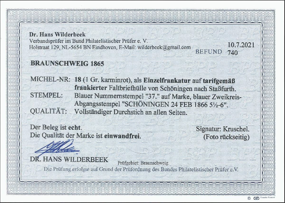 | Prüfer: | Wilderbeek, Hans (BPP (Bund Philatelistischer Prüfer)) |