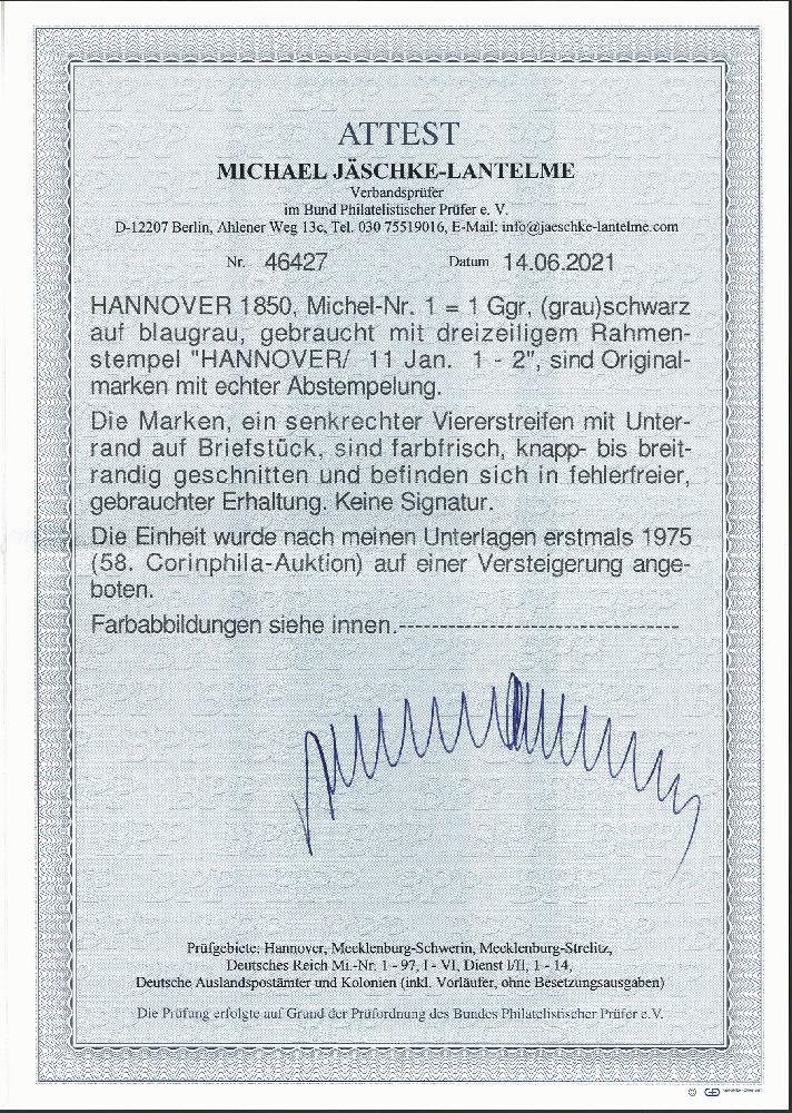 | Prüfer: | Jäschke-Lantelme, Michael (BPP (Bund Philatelistischer Prüfer)) |
