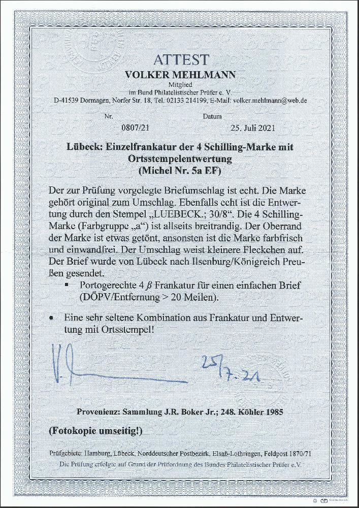 | Prüfer: | Mehlmann, Volker (BPP (Bund Philatelistischer Prüfer)) |