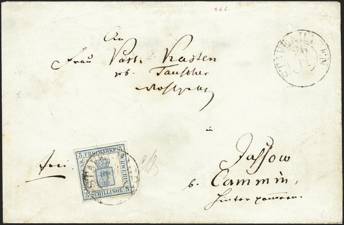 | Zusatzinformationen und Suchstichworte: | 377. Auktion Heinrich Köhler 20. - 25. September 2021 Los 94 1856, 5 Schillinge blau, farbfrisch und voll- bis breitrandig mit leicht auf- und nebengesetztem Doppelkreisstempel "STAVENHAGEN 26 11" auf Briefkuvert (etwas umgefaltet) nach Dassow bei Cammin. Schöne und sonst einwandfreie Erhaltung. Eine ungewöhnliche Überfrankatur, wahrscheinlich durch Verwechslung des Ortes Cammin in Pommern mit dem Ort Camin in Westpreußen; es ist ein weiterer Brief mit dieser Fehlfrankatur aus derselben Korrespondenz registriert. Fotoattest Jäschke-L. BPP (2021) Ausruf 500,00 EUR Zuschlag 1.050,00 EUR (aus der Sammlung Erivan Haub) |
