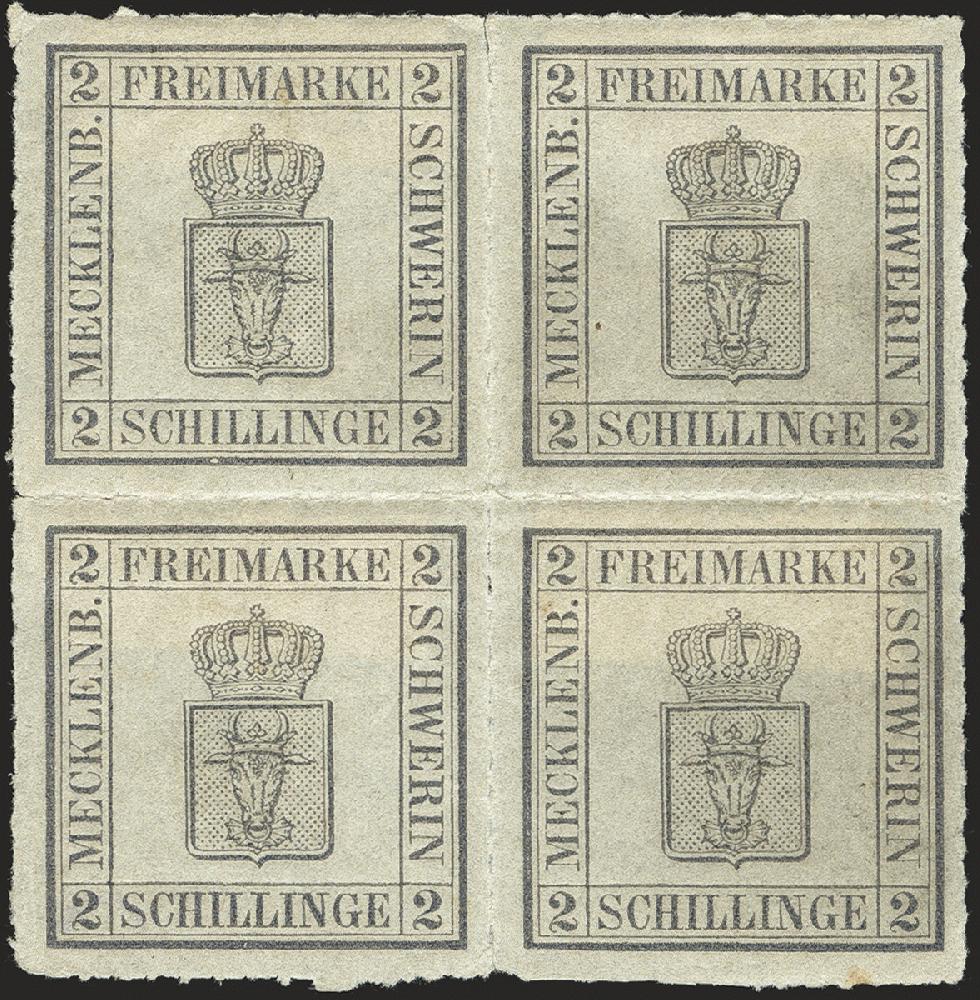| Zusatzinformationen und Suchstichworte: | 377. Auktion Heinrich Köhler 20. - 25. September 2021 Los 97 2 Schilling dunkelgrau im 4er-Block, farbfrisch und meist gut durchstochen, ungebraucht mit Originalgummi und größeren Falzresten . Zwei Werte kleine Beanstandungen und teils leicht angetrennt; insgesamt frische und passable Erhaltung. Eine seltene Einheit, die Heinrich Köhler-Kartei hat keine größere dieser Marke registriert. Ein Wert Händlersignatur, Fotoattest Jäschke-L. BPP (2021) Ausruf 400,00 EUR Zuschlag 2.400,00 EUR (aus der Sammlung Erivan Haub) |