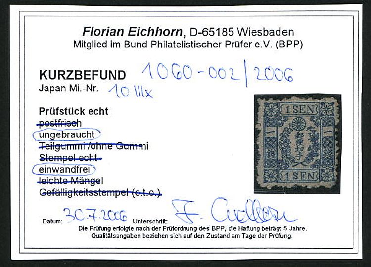 | Prüfer: | Eichhorn, Florian (BPP (Bund Philatelistischer Prüfer)) |