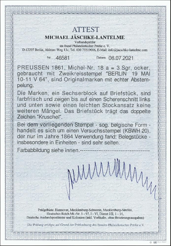 | Prüfer: | Jäschke-Lantelme, Michael (BPP (Bund Philatelistischer Prüfer)) |