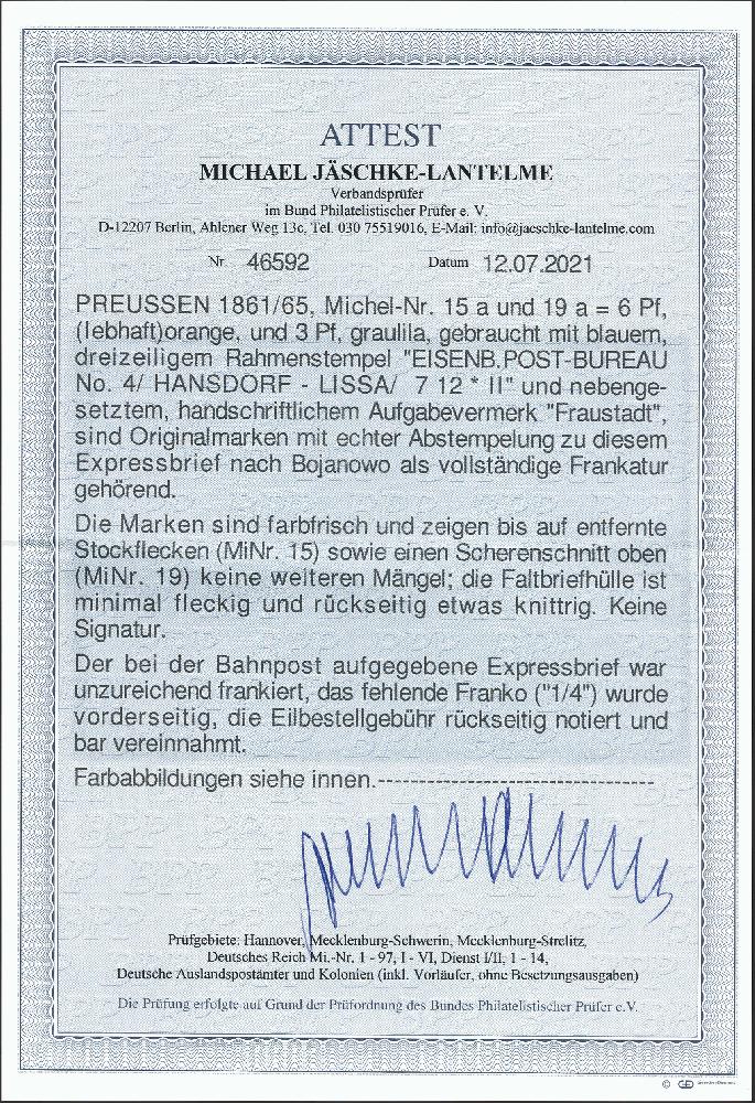 | Prüfer: | Jäschke-Lantelme, Michael (BPP (Bund Philatelistischer Prüfer)) |