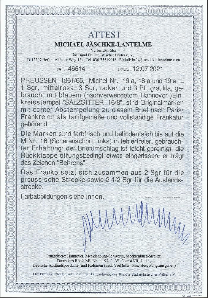 | Prüfer: | Jäschke-Lantelme, Michael (BPP (Bund Philatelistischer Prüfer)) |