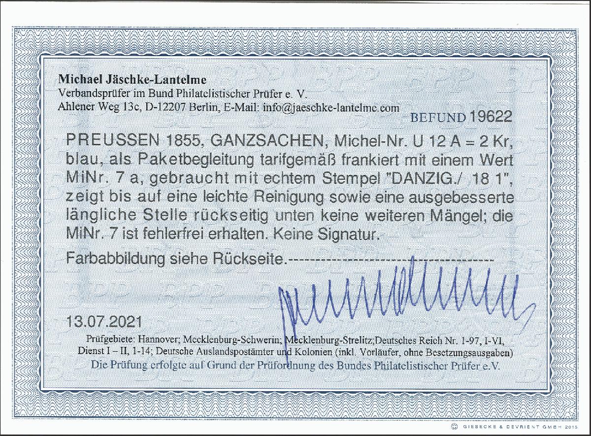 | Prüfer: | Jäschke-Lantelme, Michael (BPP (Bund Philatelistischer Prüfer)) |