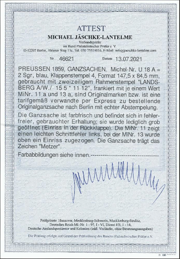 | Prüfer: | Jäschke-Lantelme, Michael (BPP (Bund Philatelistischer Prüfer)) |