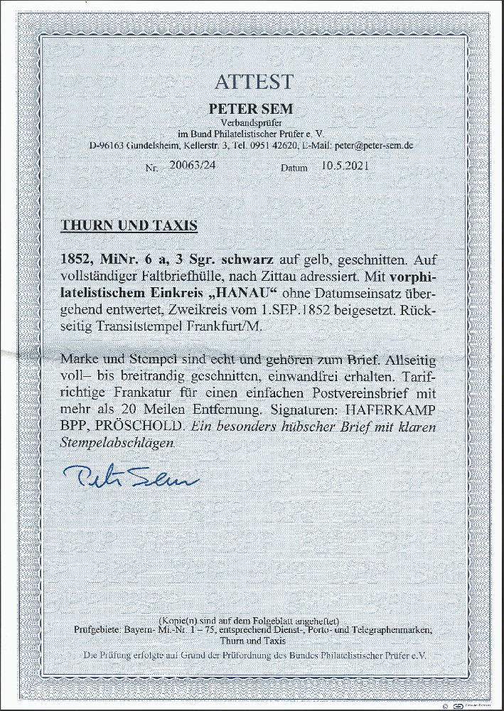 | Prüfgebiet: | Altdeutschland Thurn und Taxis |