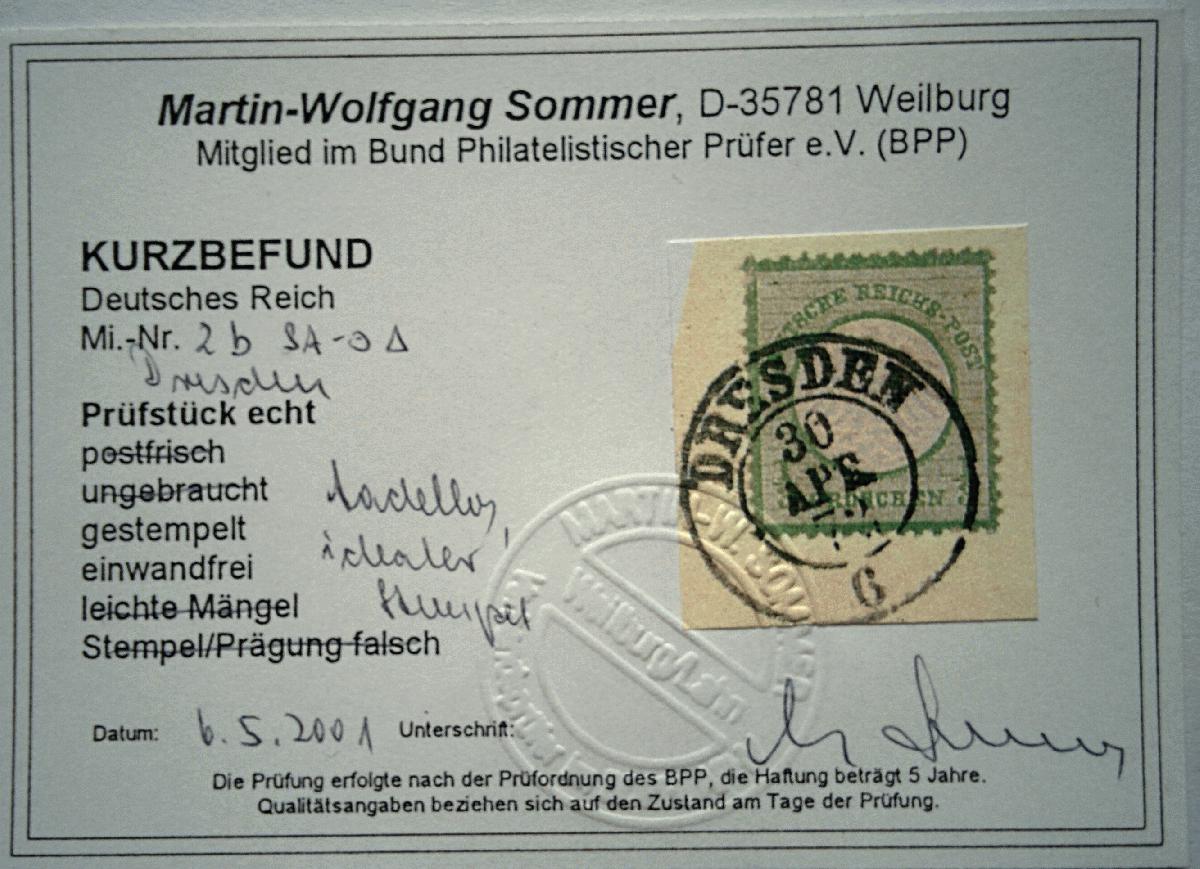 | Prüfer: | Sommer, Martin-Wolfgang (BPP (Bund Philatelistischer Prüfer)) |