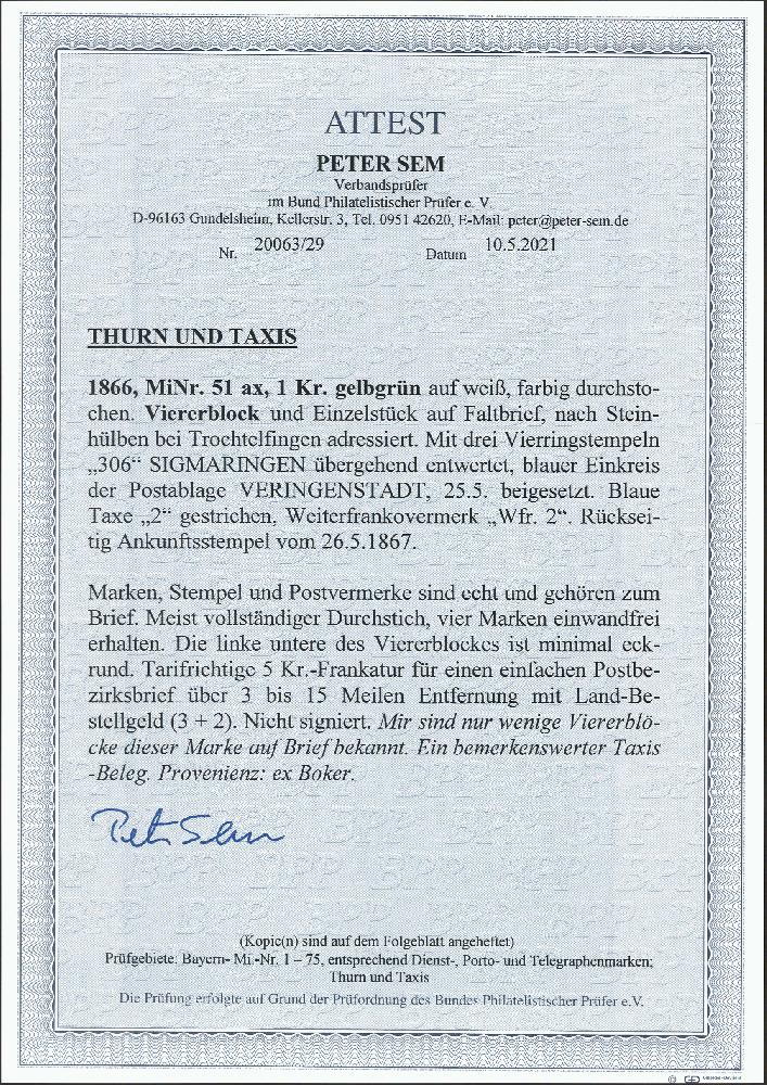 | Prüfgebiet: | Altdeutschland Thurn und Taxis |