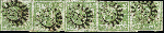 | Zusatzinformationen und Suchstichworte: | 377. Auktion Heinrich Köhler 20. - 25. September 2021 Los 9047 1850/58, 9 Kreuzer maigrün im waagerechten 5er-Streifen, dabei die mittlere Marke in Type I, farbfrisch und allseits breitrandig mit nahezu allen Zwischenlinien, sauber entwertet durch gMR "243" NÜRNBERG. Außer 2 geringen Bugspuren bei der 2. und 5. Marke von links tadellos. Ein insbesondere in der Kombination mit der seltenen Type I seltener und attraktiver Streifen. Fotoattest Brettl BPP (1985) Zuschlag 800,00 EUR |