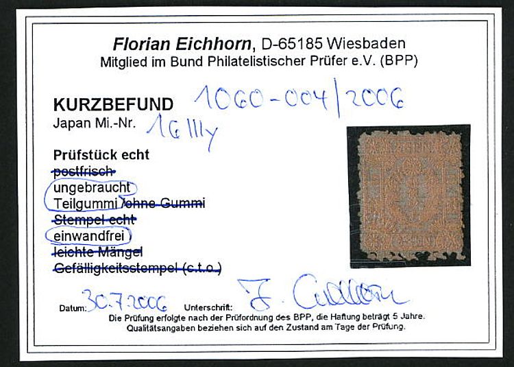 | Prüfer: | Eichhorn, Florian (BPP (Bund Philatelistischer Prüfer)) |