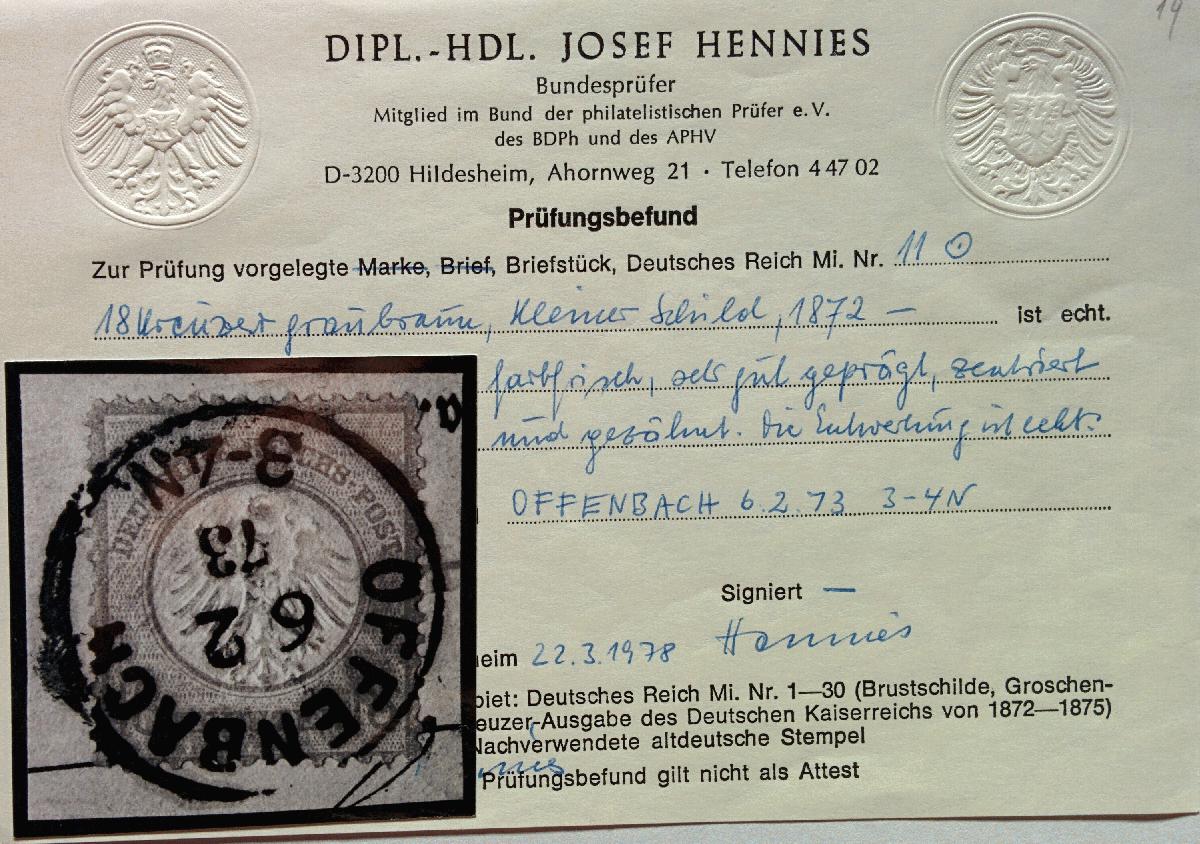 | Prüfer: | Hennies, Josef (BPP (Bund Philatelistischer Prüfer)) |