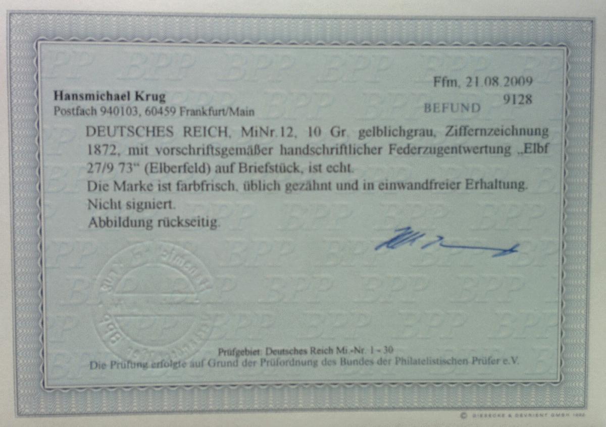 | Prüfgebiet: | Deutsches Reich 1871 - 1918 (Mi-Nr. 1 - 106) |