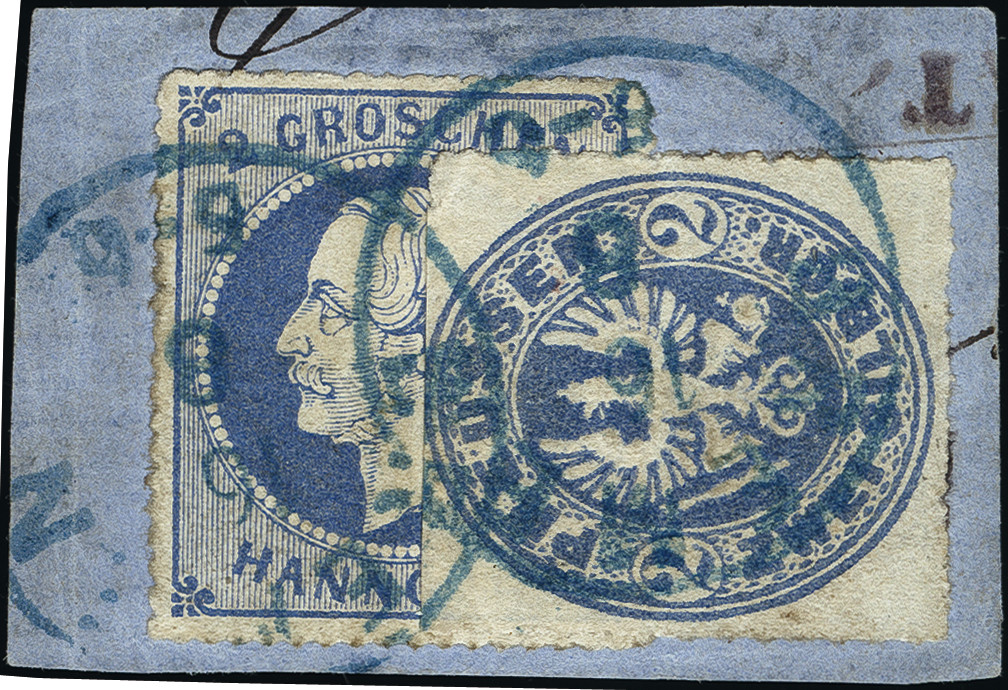 | Zusatzinformationen und Suchstichworte: | 377. Auktion Heinrich Köhler 20. - 25. September 2021 Los 9572 1864, Georg V., weißer Gummi, 2 Groschen blau zusammen mit Preußen Wappenausgabe 2 Groschen blau, je farbfrisch mit EKr. "BREMEN 16.8" auf kleinem Briefstück eines Reco-Briefes, die Preußen Marke eine Seite Scherentrennung, sonst tadellos, ein hochinteressantes Stück, wir haben aus Bremen kein weiteres registriert, u.a. sign. Fulpius mit Fotoattest (1952) sowie Fotoattest Berger BPP (1994) Zuschlag 480,00 EUR |