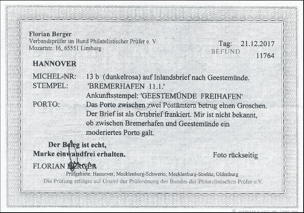 | Prüfer: | Berger, Florian (BPP (Bund Philatelistischer Prüfer)) |