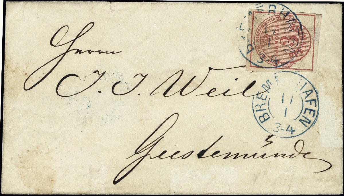 | Zusatzinformationen und Suchstichworte: | 377. Auktion Heinrich Köhler 20. - 25. September 2021 Los 9611 3 Pfg. dunkelrosa, voll- bis breitrandig mit auf- und nebengesetztem DKr. "BREMERHAFEN 17 1" auf als Ortsporto frankiertem kleinen Briefkuvert nach Geestemünde mit Ankunftsstempel "GEESTEMÜNDE FREIHAFEN" vom gleichen Tag, Fotobefund(kopie) Berger BPP (2017) Zuschlag 420,00 EUR |