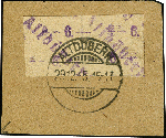 | Zusatzinformationen und Suchstichworte: | 367. Auktion Heinrich Köhler 25. - 29. September 2018 Los 1501 1945, Gebührenzettel 6 Pfg. mit violetter Wertziffer und Schrift von links oben nach rechts unten im waagerechten Paar mit Stempel "ALTDÖBERN 29.12.45" auf Briefstück, tadellos, selten, sign. Rehfeld und Fotoattest Dr. Penning BPP (2008) (Mi. 2.200,-) Ausruf 450,00 EUR |