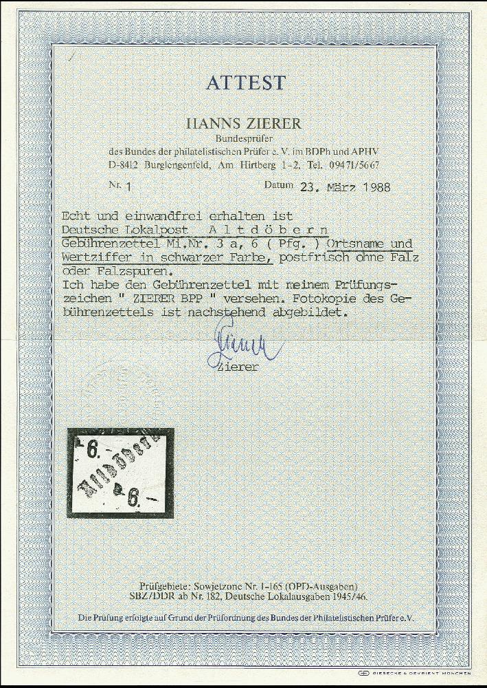 | Prüfgebiet: | Deutsche Lokalausgaben 1945 Altdöbern |