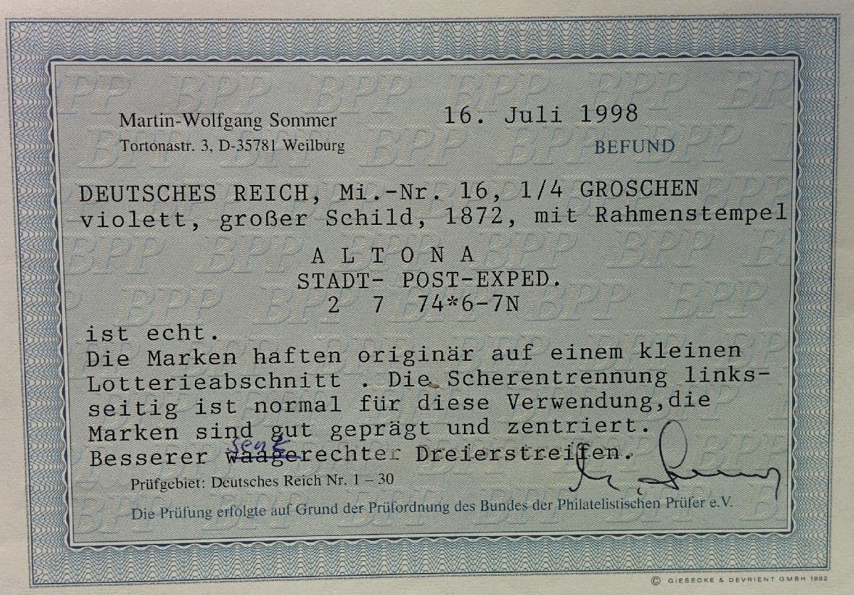 | Prüfer: | Sommer, Martin-Wolfgang (BPP (Bund Philatelistischer Prüfer)) |
