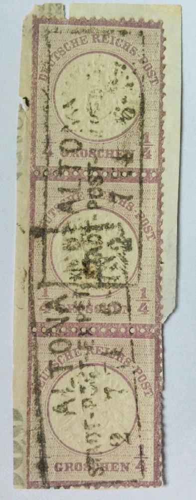 | Zusatzinformationen und Suchstichworte: | Gestempelt, senkrechter Dreierstreifen |