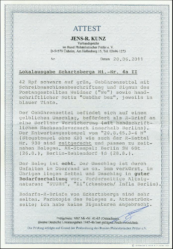 | Prüfgebiet: | Deutsche Lokalausgaben 1945 Eckartsberga |