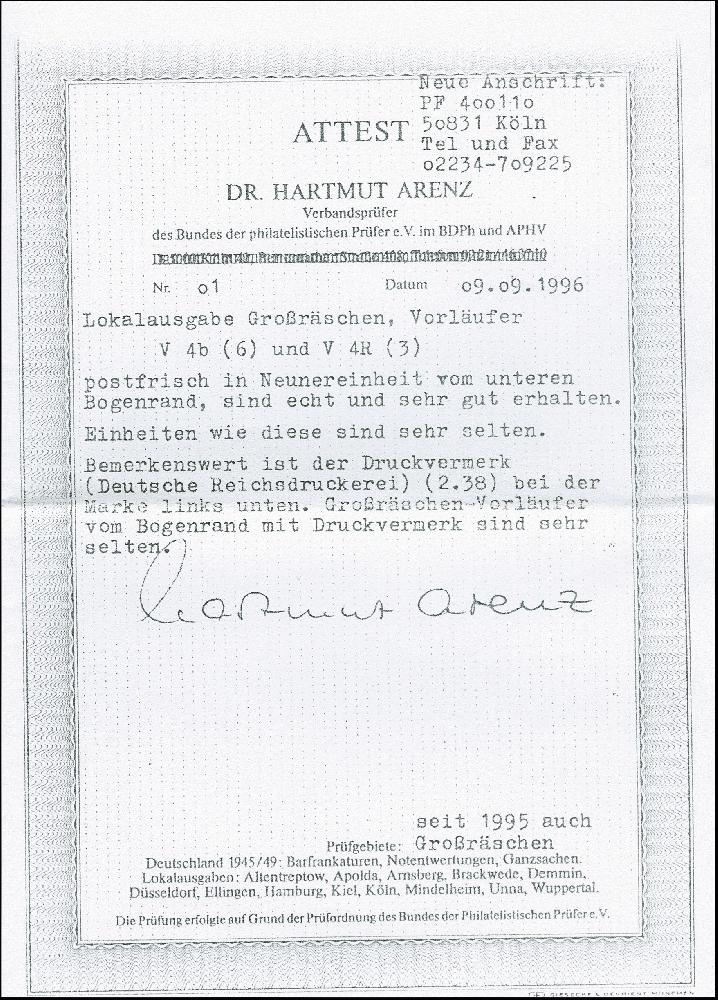 | Prüfgebiet: | Deutsche Lokalausgaben 1945 Großräschen |
