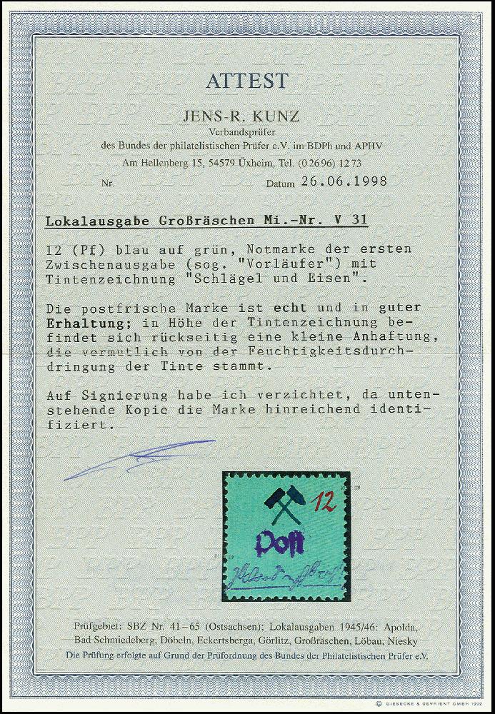 | Prüfgebiet: | Deutsche Lokalausgaben 1945 Großräschen |