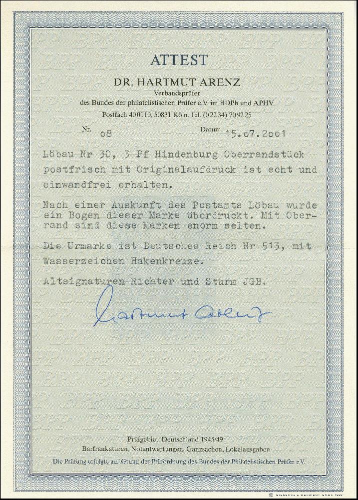 | Prüfgebiet: | Deutsche Lokalausgaben 1945 Löbau |