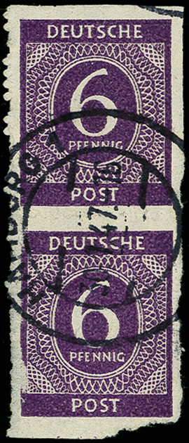 | Zusatzinformationen und Suchstichworte: | 367. Auktion Heinrich Köhler 25. - 29. September 2018 Los 1539 6 Pfg. teilgezähnt im senkrechten Paar, an einigen Stellen sind Perforationslöcher noch sichtbar, sonst fast kpl. ungezähnt, sauber gestempelt, untere Marke links mit Schürfung, trotz der Einschränkung eine seltene Einheit aus dem Bedarf, Fotoattest Schlegel BPP (1987) Ausruf 200,00 EUR |